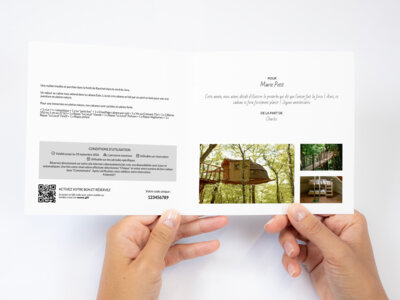 Réservez directement sur notre site internet cabanesduboisclair.com, nos disponibilités sont à jour et automatiques. Une fois votre réservation effectuée sélectionnez "Chèque" et notez votre numéro de bon cadeau dans "Commentaire". Après vérification, nous validons votre réservation.